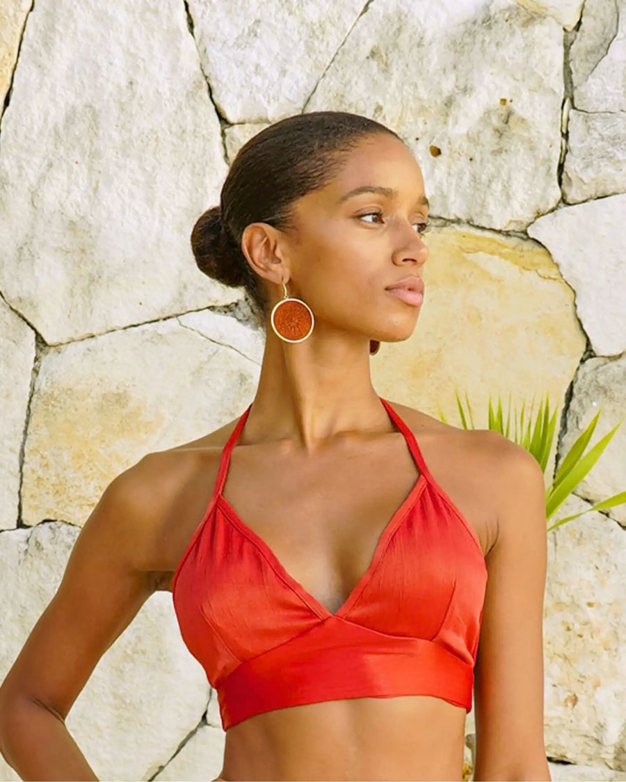 Discover the Triangle Top in Mulaan with adjustable ties that fits you perfectly! This versatile and feminine design gives you the ideal fit thanks to its delicate ties, allowing you to look and feel amazing whatever the occasion. Its timeless style makes it easy to combine with other pieces from our collections, creating stylish and modern looks in an instant.